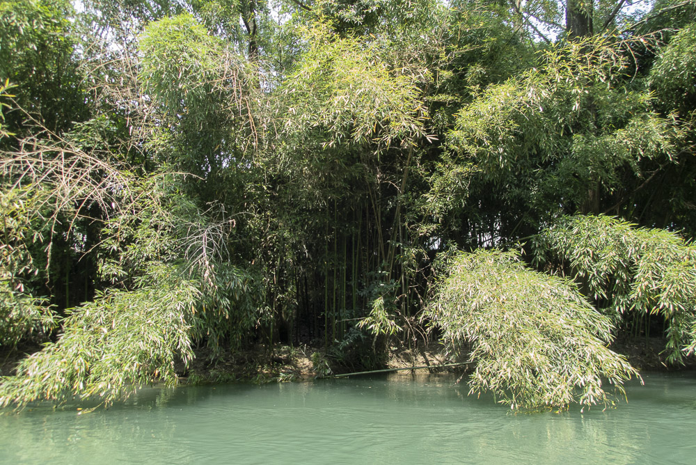 Danach ging‘s flussabwärts zuerst durch Sacile, unter Brücken und Lianen und an Gärten vorbei. Die angenehme Strömung sorgte für ein entspanntes Dahinpaddeln im mäandernden Flussbett. Wir passierten beeindruckende Bambuswälder, deren Pflanzen die Höhe von Hochhäusern hatten. Hindernis gab es keines zu umtragen. Das einzige, was diesen Paddelausflug noch perfekter gemacht hätte, wäre ein Pausenplatz am Fluss gewesen. Die Flussufer sind jedoch durchwegs angeböscht und bewachsen. Wir erklommen schließlich eine Böschung und machten Rast auf dem Rasen der Freizeitanlage in Cavolano.