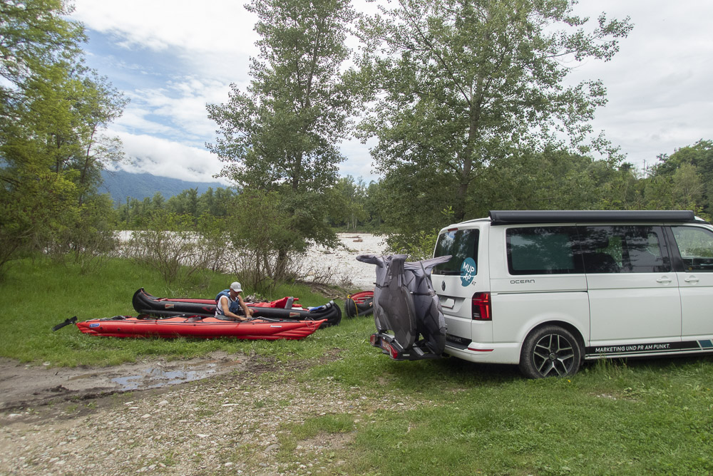 Da wir in der Nähe des Flusses am Stellplatz Grave nächtigten, konnten wir uns selbst ein Bild davon machen: Der Piave zeigte sich wahrlich nicht von seiner besten Seite! Das Hochwasser (Pegeltand 180 cm) hatte das Schottersediment aufgewühlt und das türkise Wasser in eine braune Brühe verwandelt. Nicht sehr verlockend für eine Paddeltour! Einen weiteren Tag zu warten, war jedoch keine Option. Denn es war die letzte Gelegenheit für HWS, zumindest eine Tour am Piave zu unternehmen, da sein Urlaub früher endete.