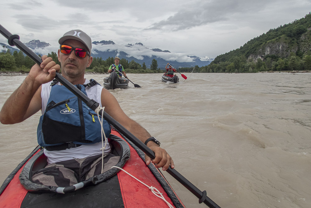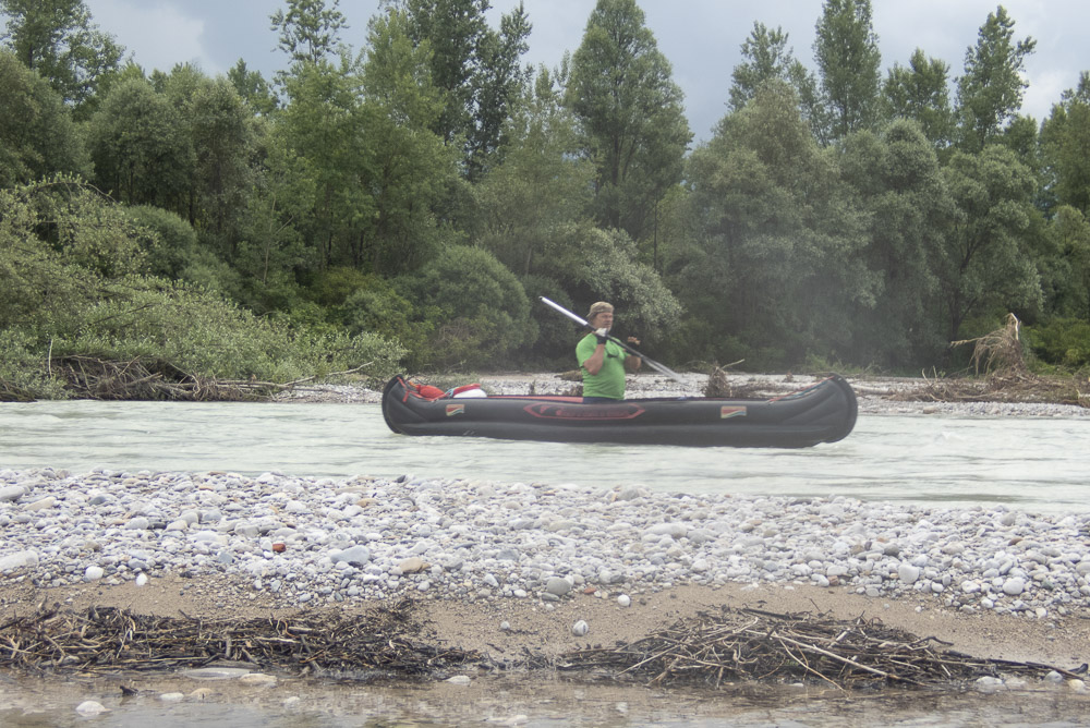 Als „Entschädigung“ dafür erfuhren wir aber, wie es sich anfühlt, auf einem Fluss bei Hochwasser zu paddeln. Üblicherweise ist ein solches Unterfangen nicht ungefährlich, vor allem wenn ein Fluss Engstellen durchfließt, die bei reißender Strömung zu schwer passierbaren Hindernissen werden können. Der Piave jedoch war aufgrund seines breiten Flussbetts diesbezüglich eher ungefährlich. Eine Kenterung wäre dennoch nicht angebracht gewesen, denn eine derart starke Strömung birgt das Risiko, weit abzutreiben und eventuell das Boot zu verlieren. Glücklicherweise ist nichts passiert!