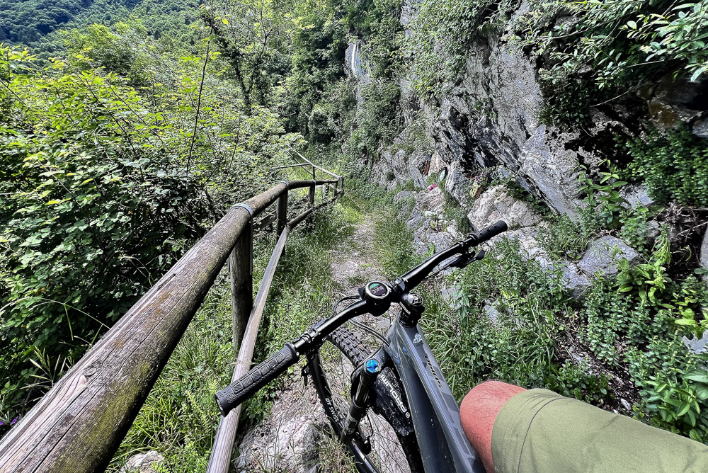 Wenn es nicht gerade zuvor stark geregnet hat, ist auch diese Tour (22 km, 2:23 Std. mit Bio-Bike) absolut lohnenswert. Wir würden sie aber – nachträglich betrachtet – jedenfalls in umgekehrter Richtung fahren. Also zuerst die Straße zum Pass rauf und dann durch das Val di Lamen retour.