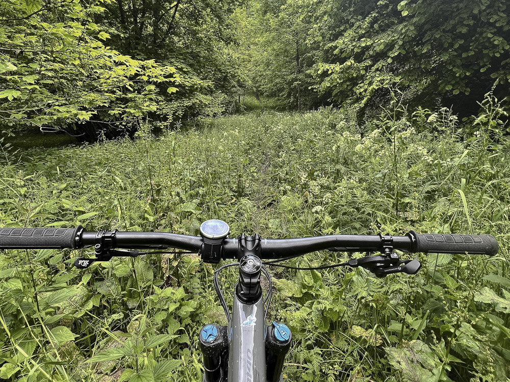 Der Wald-Abschnitt war – nachträglich betrachtet – im Vergleich zum Gesamttrack relativ kurz. Aber uns kam er ewig vor. Vermutlich wäre es besser gewesen, diese Tour in umgekehrter Richtung zu fahren, dann würde man dieses Waldstück bergab fahren (was für mich allerdings ebenfalls technisch nur schwer machbar gewesen wäre). Als schließlich den Wald verlassen und wieder eine Siedlung erreicht hatten, begann es zu regnen. Wir stellten uns eine Zeitlang bei einem Hausvorsprung unter und fassten unsere Regenhosen* aus unserem Rucksack*.